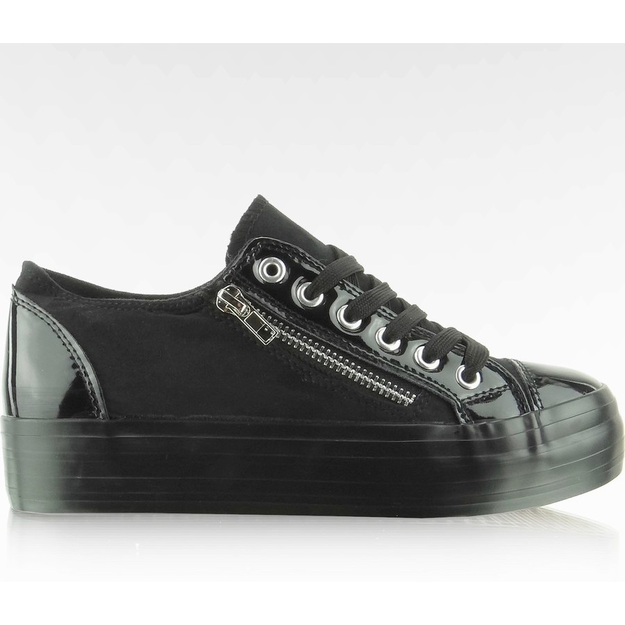 - La combinación de elementos de gamuza y charol crea un contraste interesante: las zapatillas de deporte combinarán bien tanto con jeans como con vestidos.