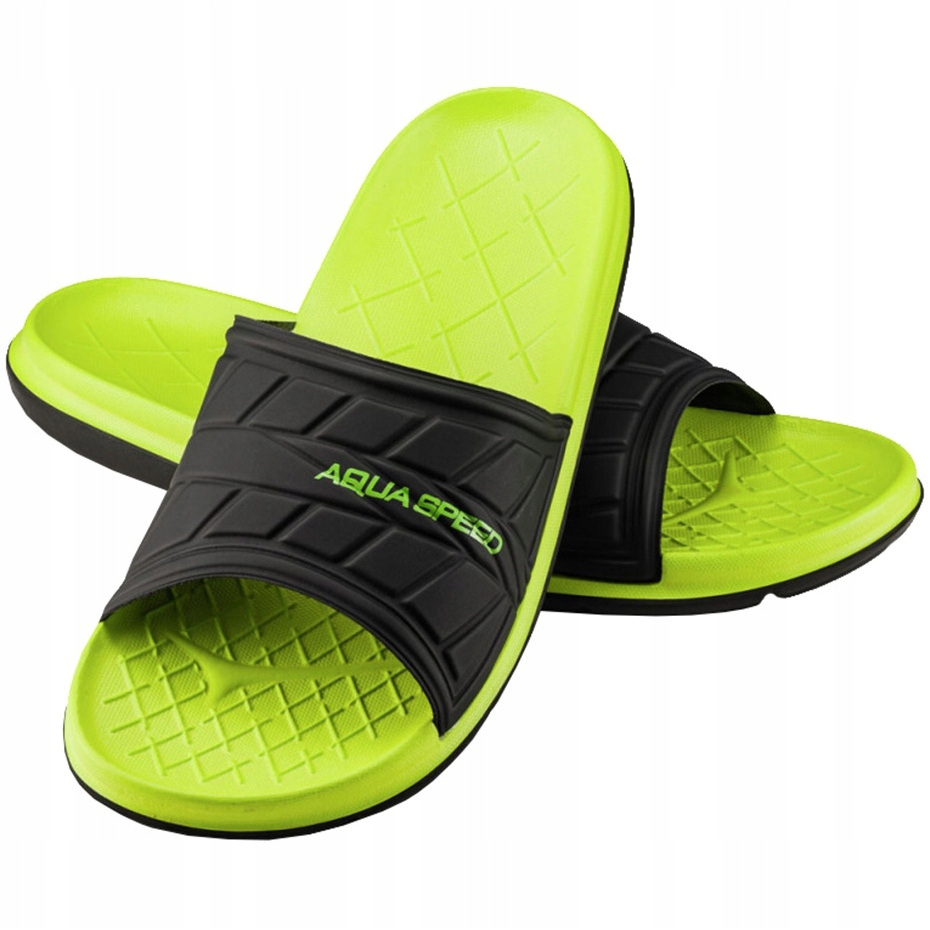 Las zapatillas Aqua Speed son una propuesta tanto para mujer como para hombre. El modelo funcionará bien en la piscina y mientras se relaja junto al agua. Construcción ligera de espuma EVA. La correa de sujeción tiene un revestimiento interior de material suave para mayor comodidad y estabilización. La suela dura garantiza la seguridad al caminar sobre superficies irregulares y resbaladizas. Para la producción del modelo se utilizaron materiales sin cloro, gracias a los cuales las solapas no dejan rastros en el suelo y no emiten un olor desagradable. Modelo verde con detalles en negro.