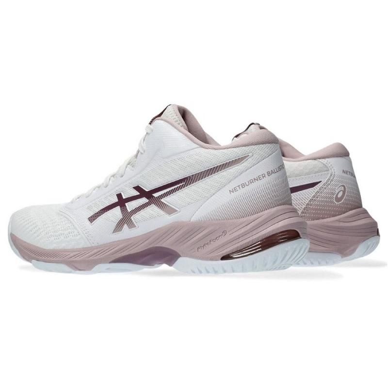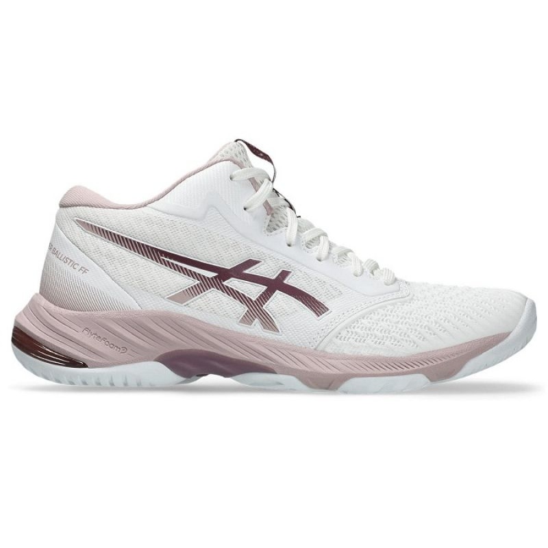 Los zapatos ASICS NetBurner Ballistic FF MT 3 se caracterizan por un color blanco elegante con acentos rosados, lo que los hace no solo funcionales, sino también un elemento de moda del guardarropa deportivo. El endurecimiento del talón y el fortalecimiento de la Czuba también afectan la seguridad y la durabilidad del calzado. Dirigido a las mujeres, estos zapatos tienen una altura frente al tobillo y están equipados con un broche de encaje clásico, que le permite adaptarse a las necesidades individuales.
