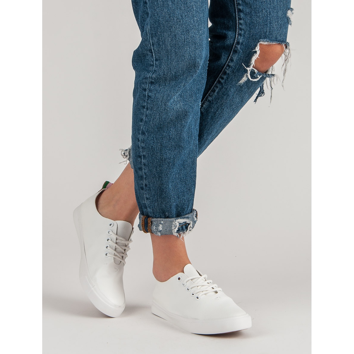 Las zapatillas blancas con cordones son una opción perfecta para toda mujer de moda que valora la comodidad y el estilo. Estos zapatos ligeros y aireados encajan perfectamente en el ambiente juvenil y su diseño sencillo los hace combinar perfectamente con varios estilos, especialmente con jeans.