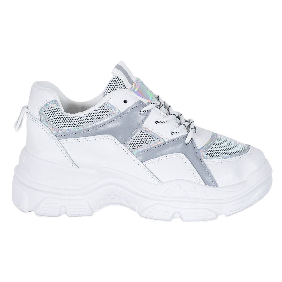Fabricadas con material de alta calidad que imita el cuero, las zapatillas blancas y grises son perfectas para cualquier época del año. Los detalles plateados añaden elegancia, lo que los convierte en un complemento perfecto para el estilo urbano. La plataforma alta, de 5,5 cm de altura, no sólo enfatiza el estilo femenino, sino que también garantiza la comodidad.