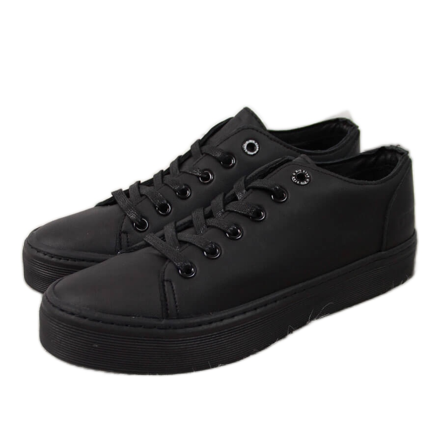 Las zapatillas de deporte de plataforma baja para mujer, negras Big Star II274098, son una excelente opción para las mujeres que buscan una combinación de diseño moderno y comodidad de uso. Fabricadas en piel ecológica de alta calidad, estas zapatillas se distinguen no solo por su apariencia moderna, sino también por su durabilidad y facilidad de cuidado. Su color negro minimalista hace que combinen con muchos estilos, tanto casuales como un poco más elegantes.