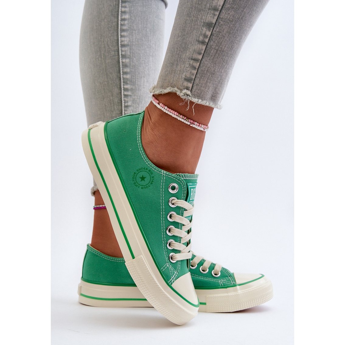 Gracias al color simple y verde, estas zapatillas bajas son fáciles de combinar con varios artículos de vestuario. Combinan jeans, faldas e incluso pantalones cortos. Elija las zapatillas de zapatillas Big Star nn274268 y disfrute no solo de apariencia de moda, ¡sino también consuelo todos los días!