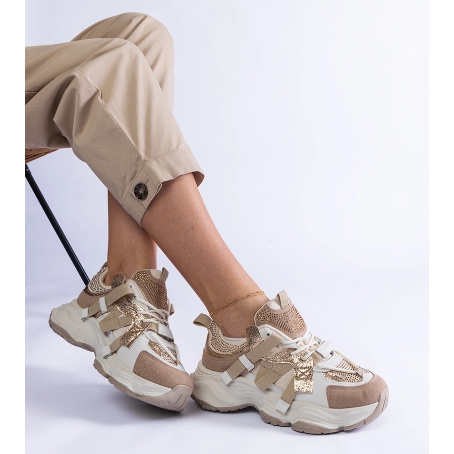 Las zapatillas beige con inserciones doradas de una marca de buena reputación, otra marca es una gran opción para cada mujer que quiere combinar la comodidad con un aspecto de moda. Estos elegantes zapatos deportivos se distinguen por un diseño elegante y atención al detalle, lo que los hace perfectamente ajustados a las últimas tendencias.