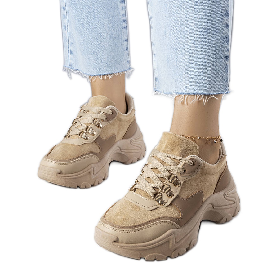 Modernas y femeninas: las zapatillas beige Jenna combinan el diseño original y la comodidad del uso. La parte superior hecha de una combinación de cuero y tela ecológicos se ve efectivo y le da a los zapatos ligereza, y una suela expresiva de moda es una verdadera glaseada en el pastel de este modelo. Gracias a la sombra neutral y beige (beige/khaki), puede adaptarse fácilmente a las estilizaciones todos los días y un poco más elegantes.