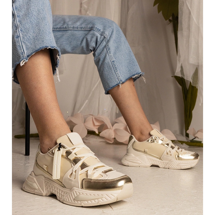 Estas zapatillas de deporte en un color beige universal encajarán perfectamente en las tendencias, asegurando la capacidad de combinarlas con varias estilizaciones, desde casual hasta elegante. Una plataforma masiva de 4 cm de altura no solo agrega carácter, sino que también ofrece una excelente amortiguación, lo que hace que estos zapatos sean adecuados para todas las ocasiones, desde caminar hasta compras.