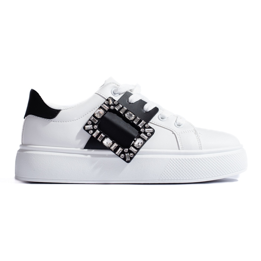 Una ventaja adicional de este modelo son los sutiles pedrería que le dan a los zapatos un aspecto único y elegante. Gracias al color neutro, blanco con detalles en negro, estas zapatillas combinarán perfectamente con una variedad de conjuntos, tanto en primavera y verano como en los días más frescos de otoño e invierno.