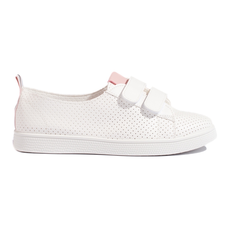 Detalles: Zapatillas blancas de mujer con velcro. blanco