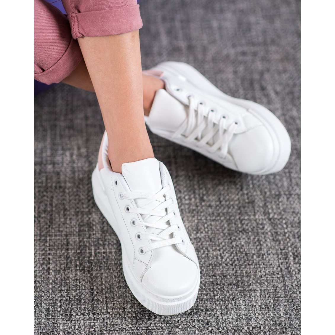 Sumérgete en el mundo del estilo urbano y la comodidad con las zapatillas blancas con plataforma de la marca Renda. Estos zapatos únicos te harán sentir la reina de cualquier situación. Su color blanco nieve aporta frescura y elegancia, y la plataforma de 3 cm de altura garantiza comodidad y una apariencia atractiva.