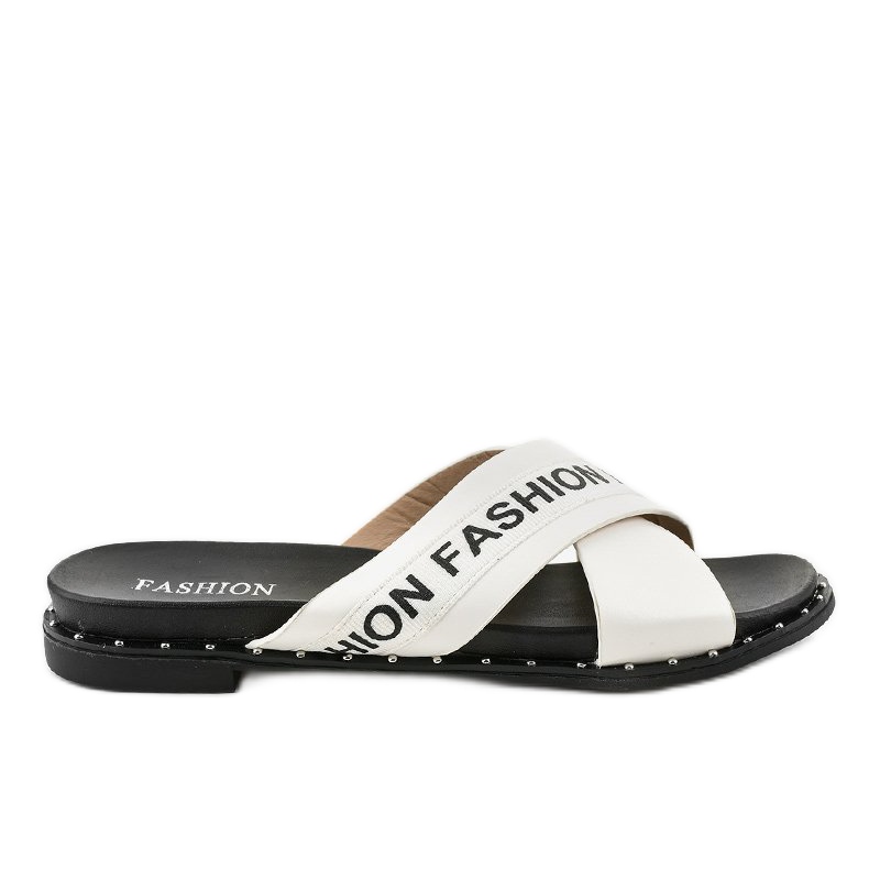Las chanclas blancas con la moderna inscripción "fashion" combinan perfectamente con atuendos cotidianos y más elegantes. Son perfectos para el día a día y, gracias a su carácter universal, serán una gran elección para todas las ocasiones.