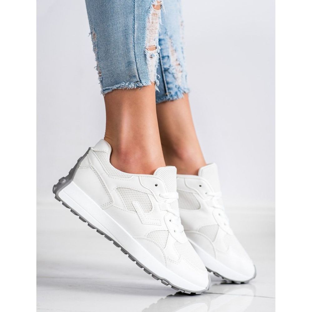 Las zapatillas SHELOVET blancas tienen la punta redonda, lo que les da un carácter ligero y deportivo. Los cordones clásicos permiten un ajuste perfecto al pie y la suela de goma con banda de rodadura garantiza un buen agarre en diversas superficies.