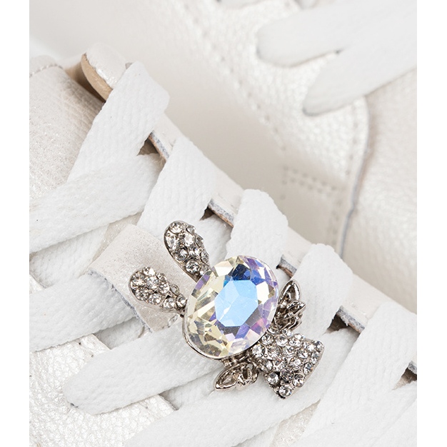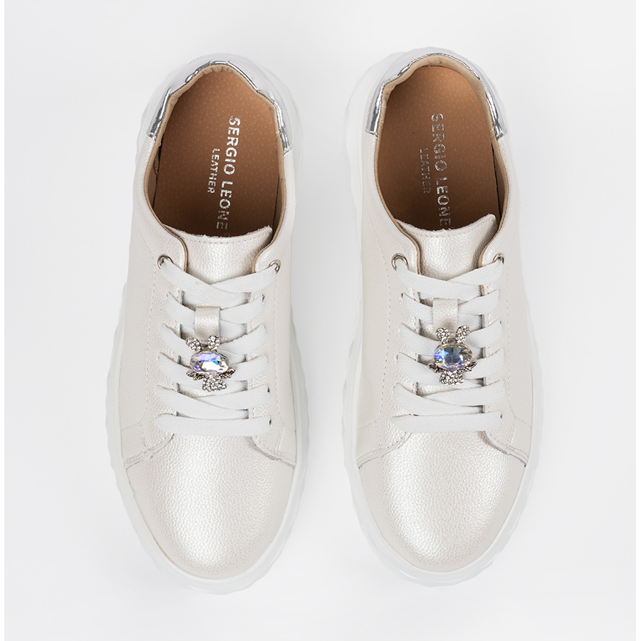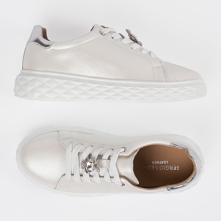 Detalles: Zapatillas blancas y plateadas con alfileres de cuero Sergio Leone blanco