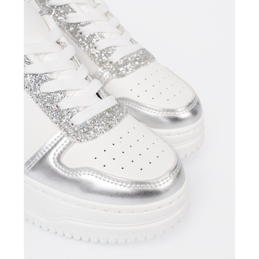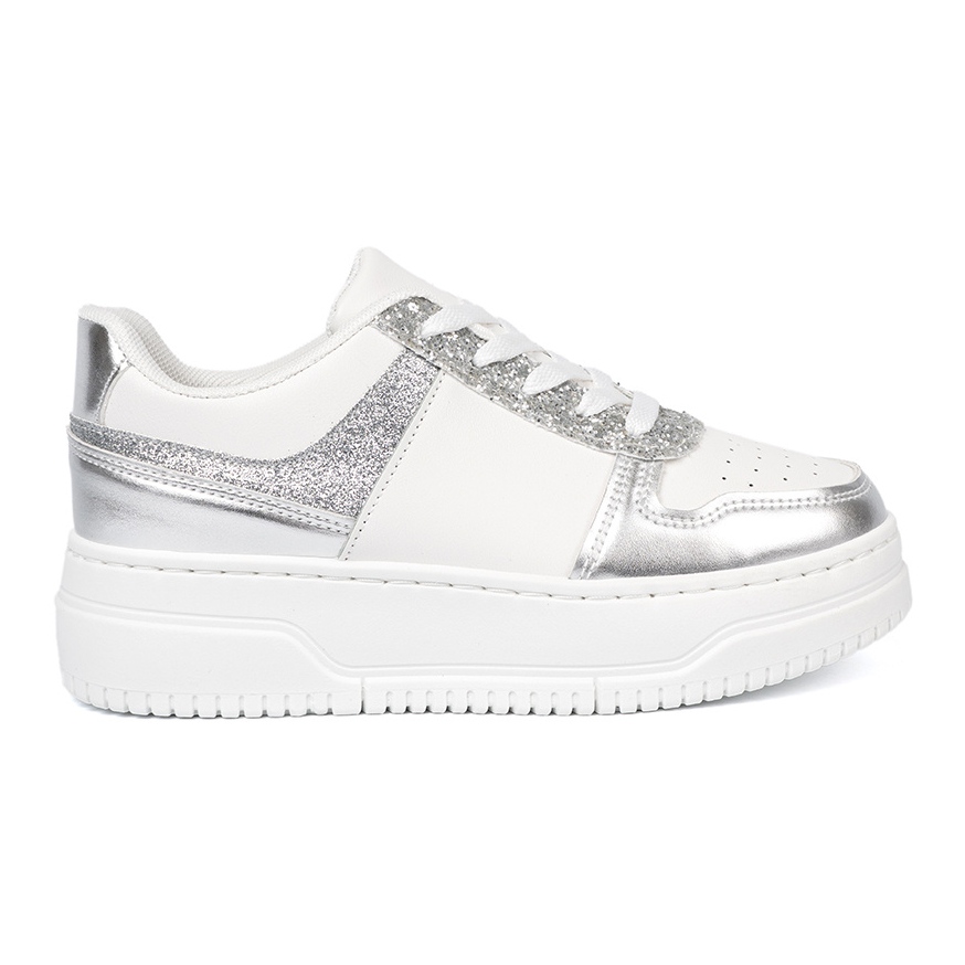 Shelvt Shelvt Zapatillas blancas y plateadas con detalles brillantes multicolor