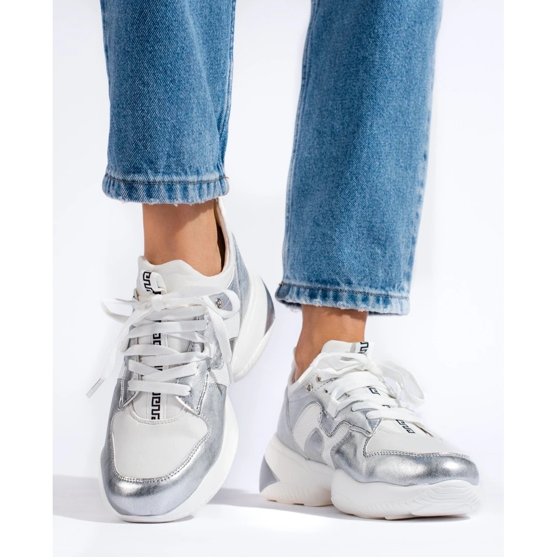 Detalles: Weide Zapatillas blancas y plateadas blanco