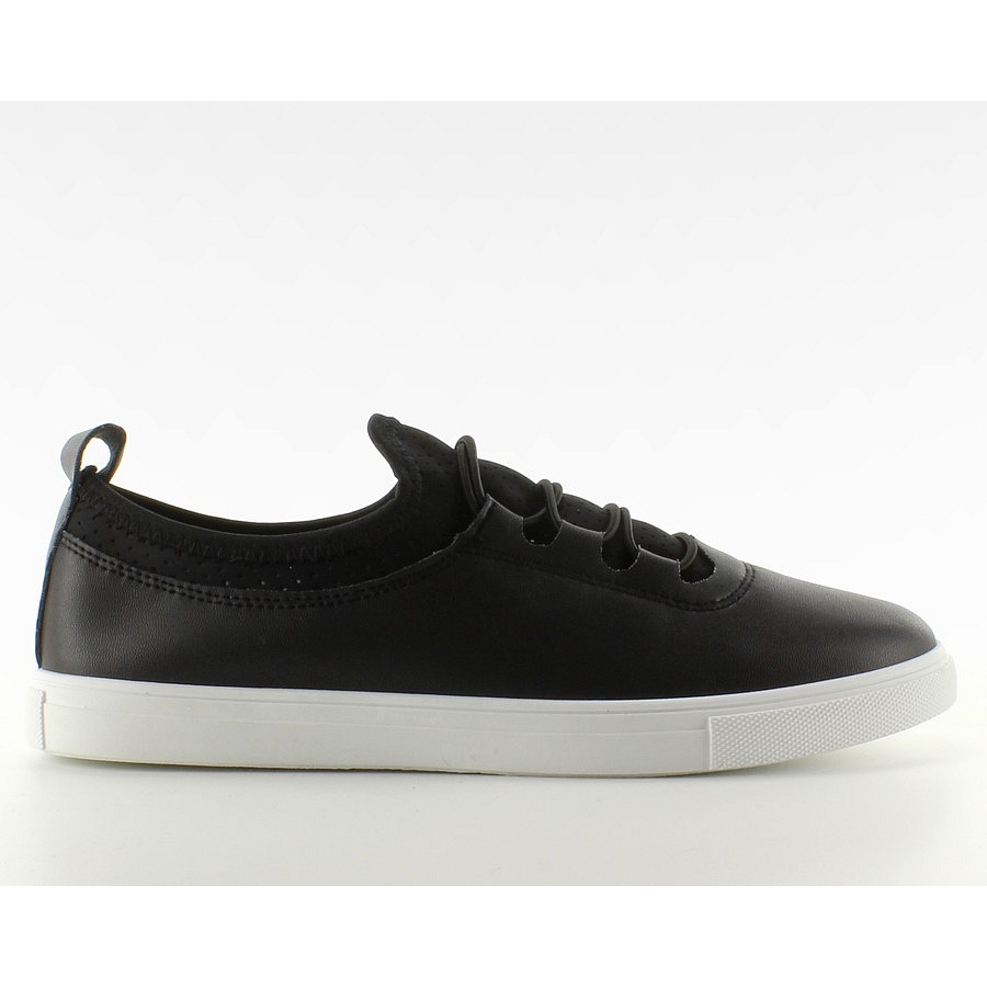 Zapatillas de deporte suave para mujeres con bandas elásticas 8-10 negros negros negros, muy cómodos y flexibles. La suela de goma es elástica, y la parte superior está hecha de agua ecológica suave con insertos prácticos de neopreno elástico, lo que garantiza la comodidad y el buen ajuste. El cierre es un cordón ancho hecho de elásticos delgados, lo que hace que sea más fácil poner y le da a los zapatos un aspecto moderno.
