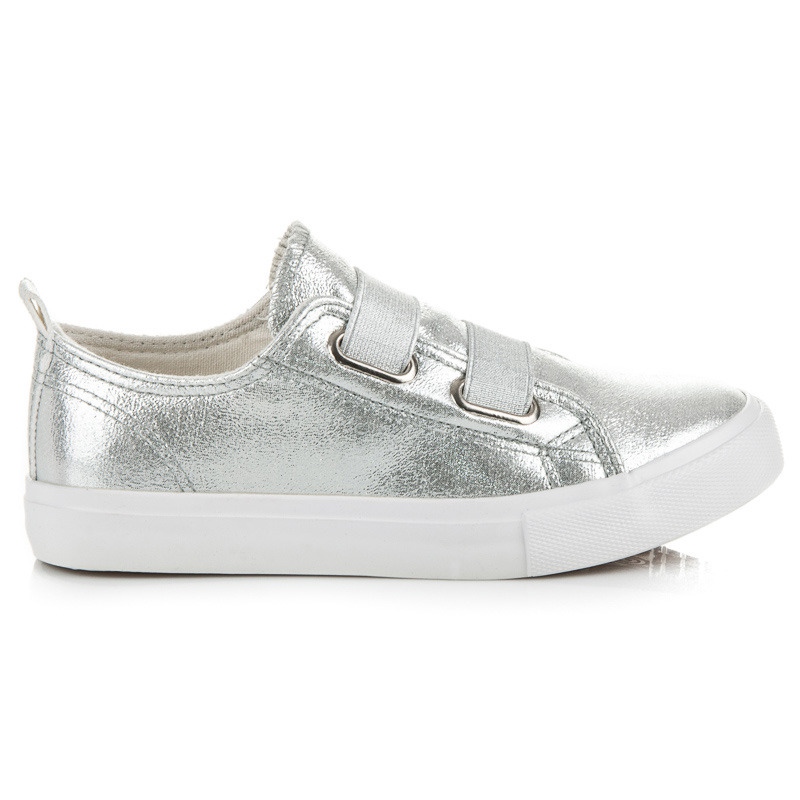 Zapatillas plateadas brillantes probablemente encantarán a muchas personas con su encanto. Tienen un corte sencillo típico de los zapatos deportivos. El cierre en sí ya no es tan típico, porque estos zapatos solo tienen bandas elásticas, gracias a los cuales el zapato puede estirarse ligeramente para adaptarse a la forma y el tamaño del pie. Estas zapatillas son extremadamente cómodas y se ven bien en los pies en combinación con muchos estilos. Se complementarán bien con una falda deportiva y unos vaqueros celestes. Zapatos para mujeres valientes que les gusta llamar la atención.