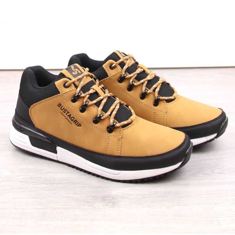 El color principal de los zapatos es el marrón, que se varía con elementos en blanco y negro. El logo de la marca Bustagrip está colocado en el lateral del zapato.