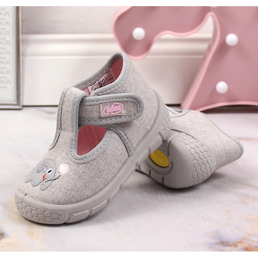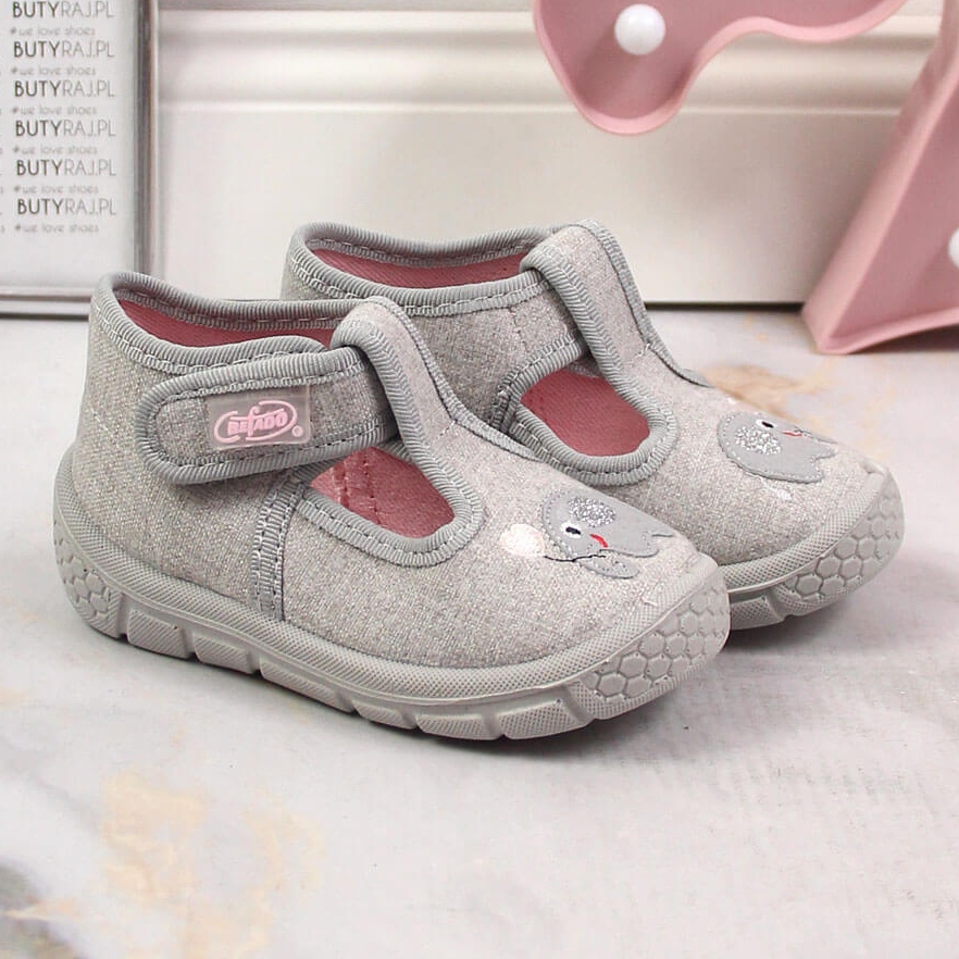 Detalles: Zapatillas casa niña con velcro Befado gris con elefante