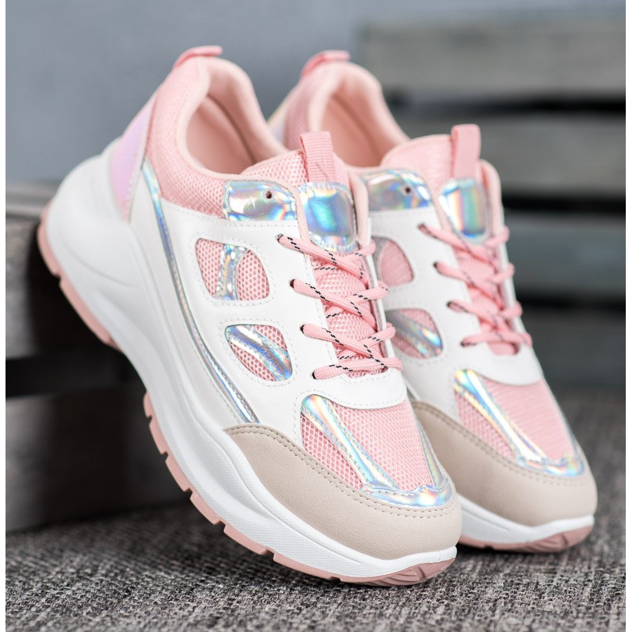 SHELOVET Zapatillas cómodas con malla blanco rosa multicolor