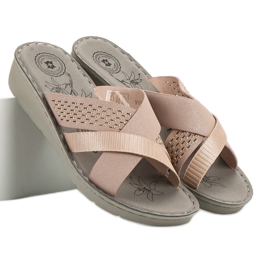 Te presentamos unas fenomenales chanclas rosas de mujer de la marca Evento, que son la elección perfecta para los días de verano. Estos encantadores zapatos combinan comodidad y estética, y su hermoso color rosa agregará frescura a cualquier estilismo. Las chanclas tienen una delicada cuña de 4 cm de alto, que no sólo las hace lucir atractivas, sino que también alarga y estiliza ópticamente las piernas.