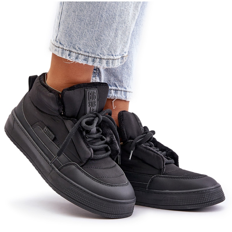 El modelo atado llega al tobillo, lo que hace que proteja perfectamente los pies del frío. Además, el calentamiento interno en forma de piel proporciona calor incluso en los días más fríos. Big Star Sneakers in Black coincidirán perfectamente con las estilizaciones casuales, dándoles un aspecto moderno y moderno.