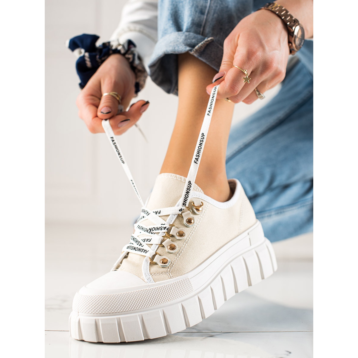 Descubra las modernas y cómodas zapatillas con plataforma con cordones del fabricante TRENDI, perfectas para el estilo diario. Estos zapatos beige son una opción ideal para las mujeres que valoran la comodidad y un look moderno.