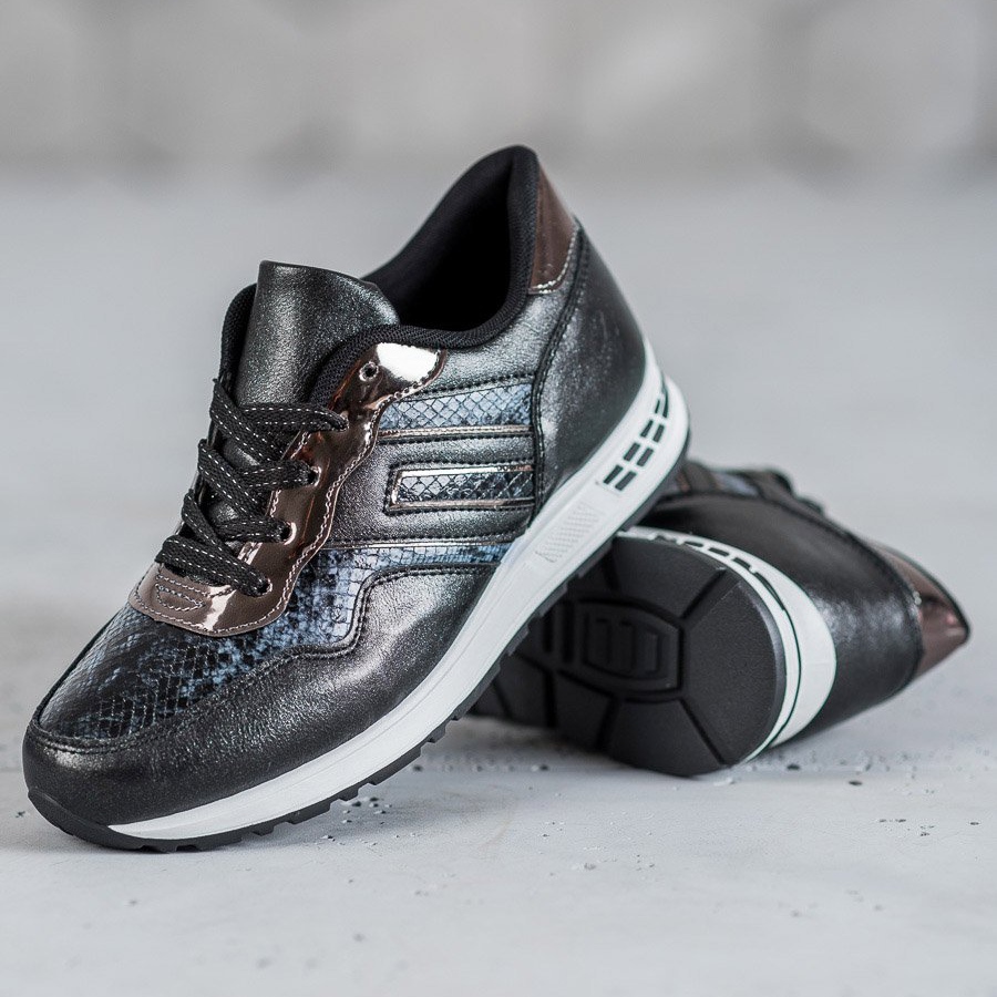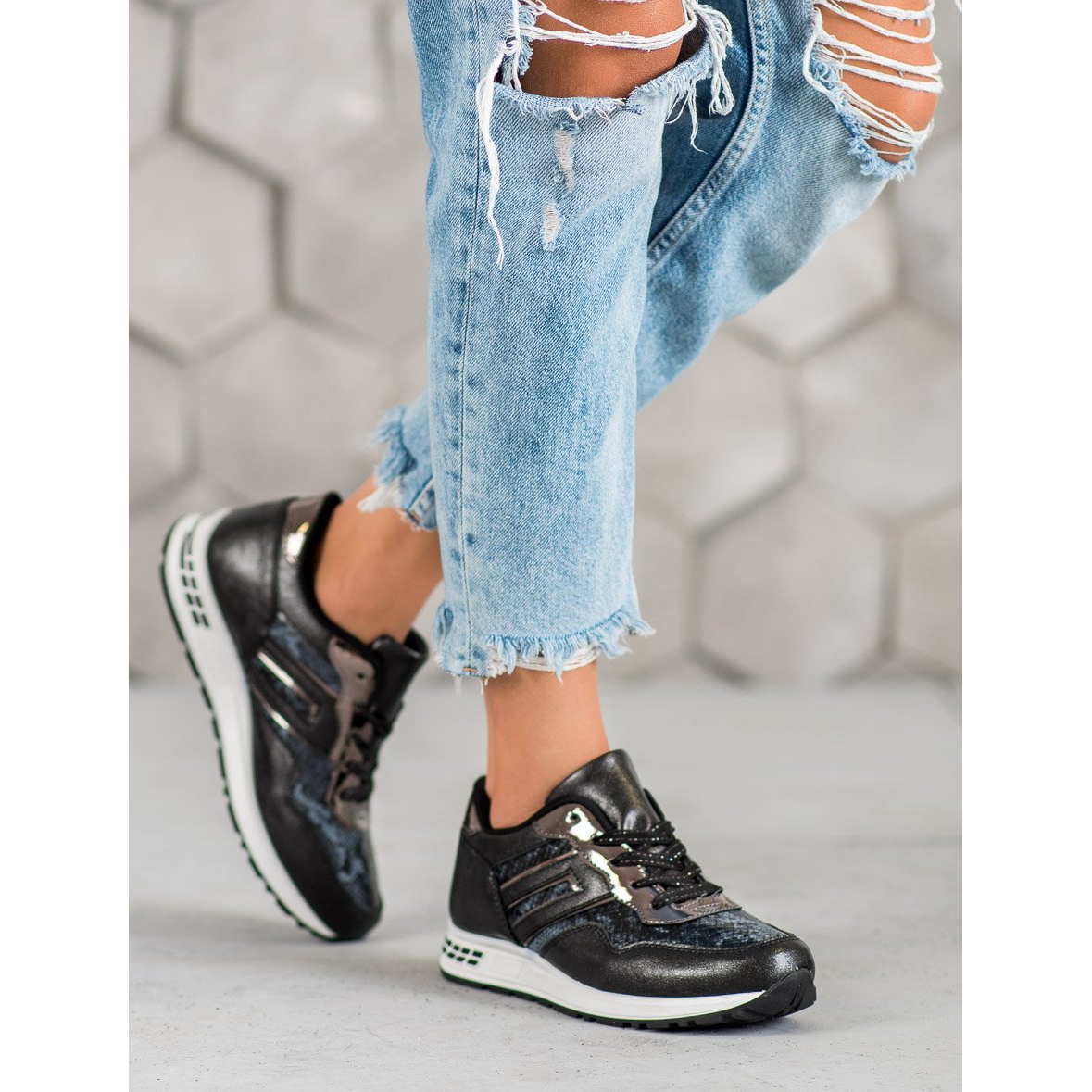 Las zapatillas negras Snake Print de la marca SHELOVET son una opción perfecta para las mujeres que quieren combinar moda con comodidad. Estas zapatillas deportivas bajas se distinguen por su elegante color negro y su estampado animal, que les da un carácter único. Los elementos dorados son un acento adicional que llama la atención y añaden un acabado elegante a cualquier estilo.