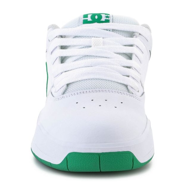 El elegante logotipo de la marca DC colocado en el lateral del zapato enfatiza la calidad de la marca, al tiempo que resalta que pertenece a una amplia gama de productos de un fabricante de renombre. El color blanco dominante combinado con sutiles detalles en verde confiere al modelo un carácter fresco y moderno.