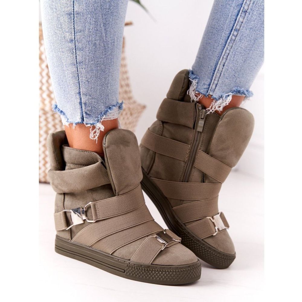 Las zapatillas están equipadas con una plantilla de cuero natural, que garantiza la máxima comodidad de uso. Una ventaja adicional son las bandas elásticas que les dan un carácter único, y la cremallera cosida facilita ponerse y quitarse los zapatos. Gracias a la cuña alta de 7 cm, las piernas parecen más esbeltas y al mismo tiempo siguen siendo cómodas.
