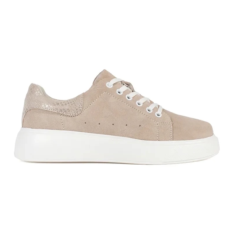 Estas zapatillas de deporte no solo son funcionales, sino también prácticas: el cierre de los cordones permite un ajuste individual, y la plataforma de 3 cm de altura con la banda de rodadura protege contra el deslizamiento en varias superficies. El color beige es una base excelente que combina con muchos estilos, lo que hace que estos zapatos sean una adición versátil a cualquier guardarropa.