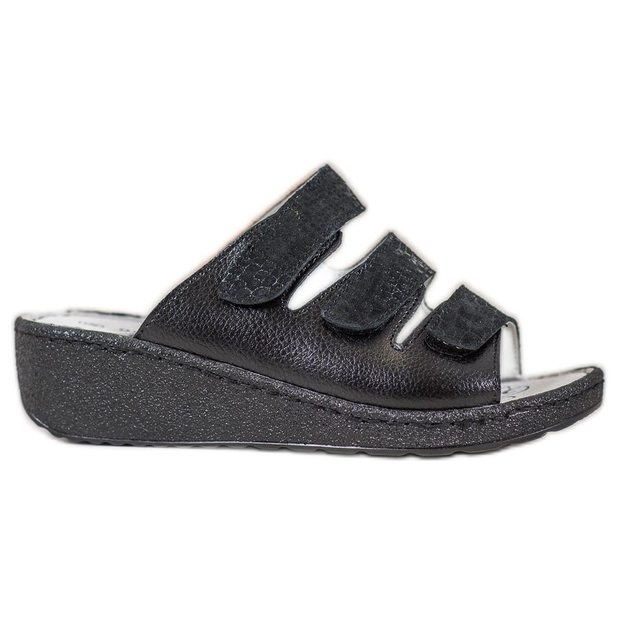 Estas elegantes chanclas están fabricadas en piel 100% natural, lo que aumenta su durabilidad y deleita con su estética. El color negro del calzado es una opción universal que hace que sea fácil combinar las chanclas con una variedad de estilos, desde conjuntos informales hasta conjuntos más elegantes.