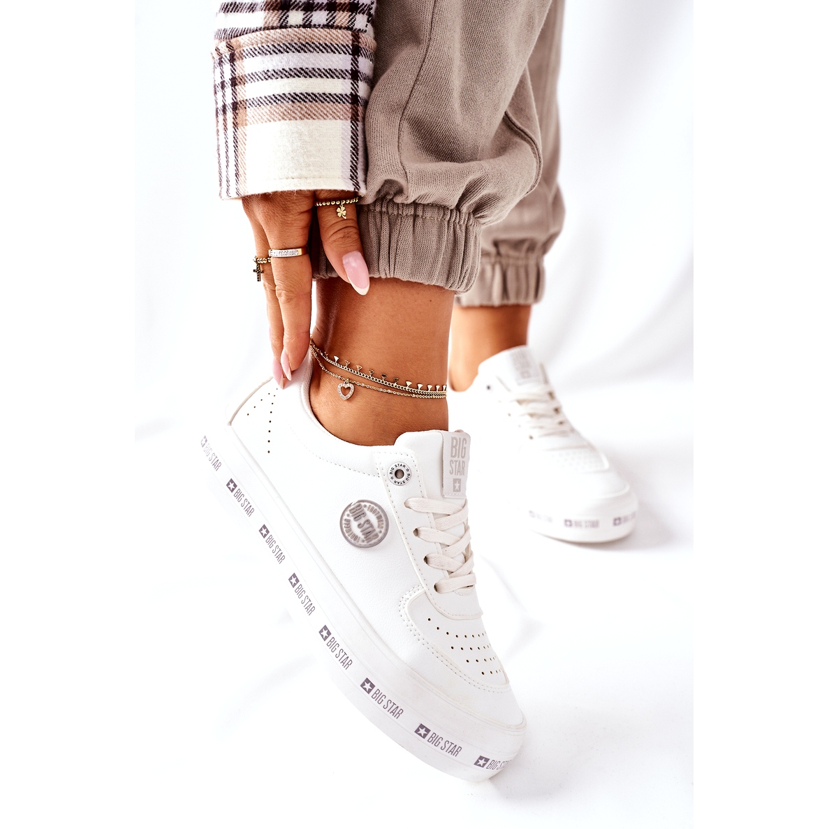 Descubre comodidad y estilo con las Zapatillas de Plataforma de Cuero Big Star II274075 en un elegante color blanco. Estas zapatillas de deporte para mujer de la marca polaca BIG STAR combinan la forma clásica con las tendencias modernas, lo que las hace perfectas para una variedad de estilos, desde informales hasta un poco más elegantes.
