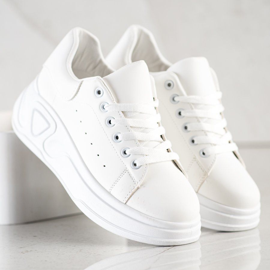 Las elegantes zapatillas de deporte de cuero ecológico SHELOVET en color blanco son la elección perfecta para las mujeres que valoran tanto la comodidad como la apariencia moderna. Estas zapatillas deportivas clásicas con plataforma de 5 cm combinan las últimas tendencias con la comodidad del día a día, convirtiéndolas en el compañero perfecto para el día a día.