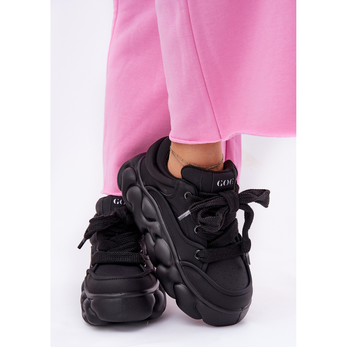 GOE Zapatillas de deporte de cuero para mujeres en la plataforma masiva GOE RR2N4044 Negro