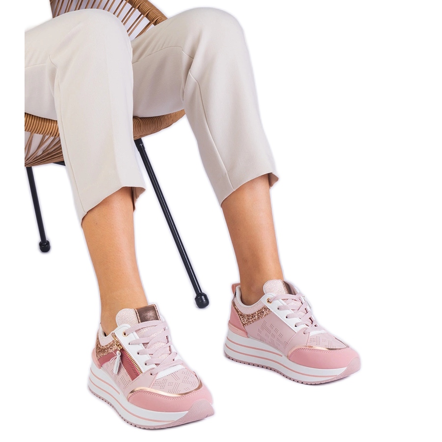 Detalles: Zapatillas de deporte de deportes rosa en la plataforma decorada con brillo rosado