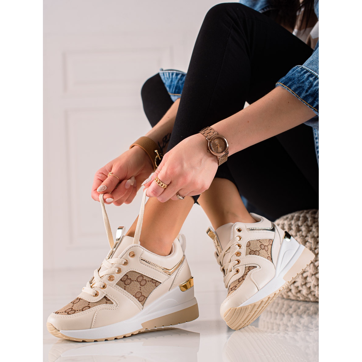 Detalles: TRENDI Zapatillas de deporte de moda en cuña beige marrón