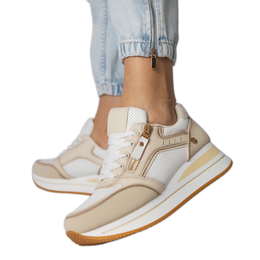 Detalles: Zapatillas de deporte deportivas beige decoradas con un control deslizante