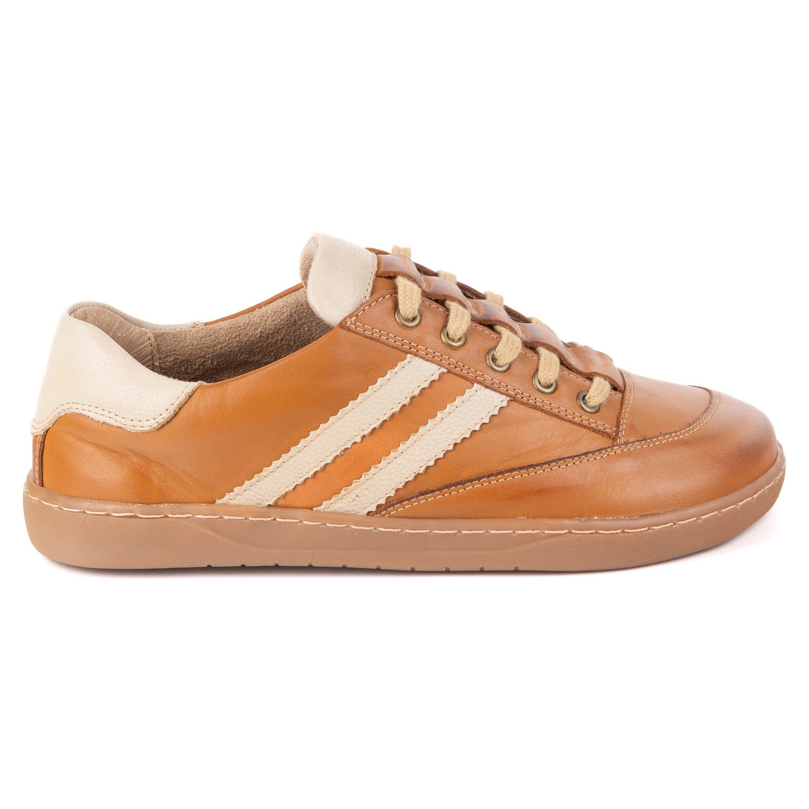 Las zapatillas de deporte Barefoot Kaia Olivier es una gran opción para las mujeres que quieren combinar la comodidad con el estilo. Estos zapatos de cuero anatómico en marrón claro se distinguen no solo por el diseño moderno, sino también por un diseño innovador adaptado al movimiento natural del pie.