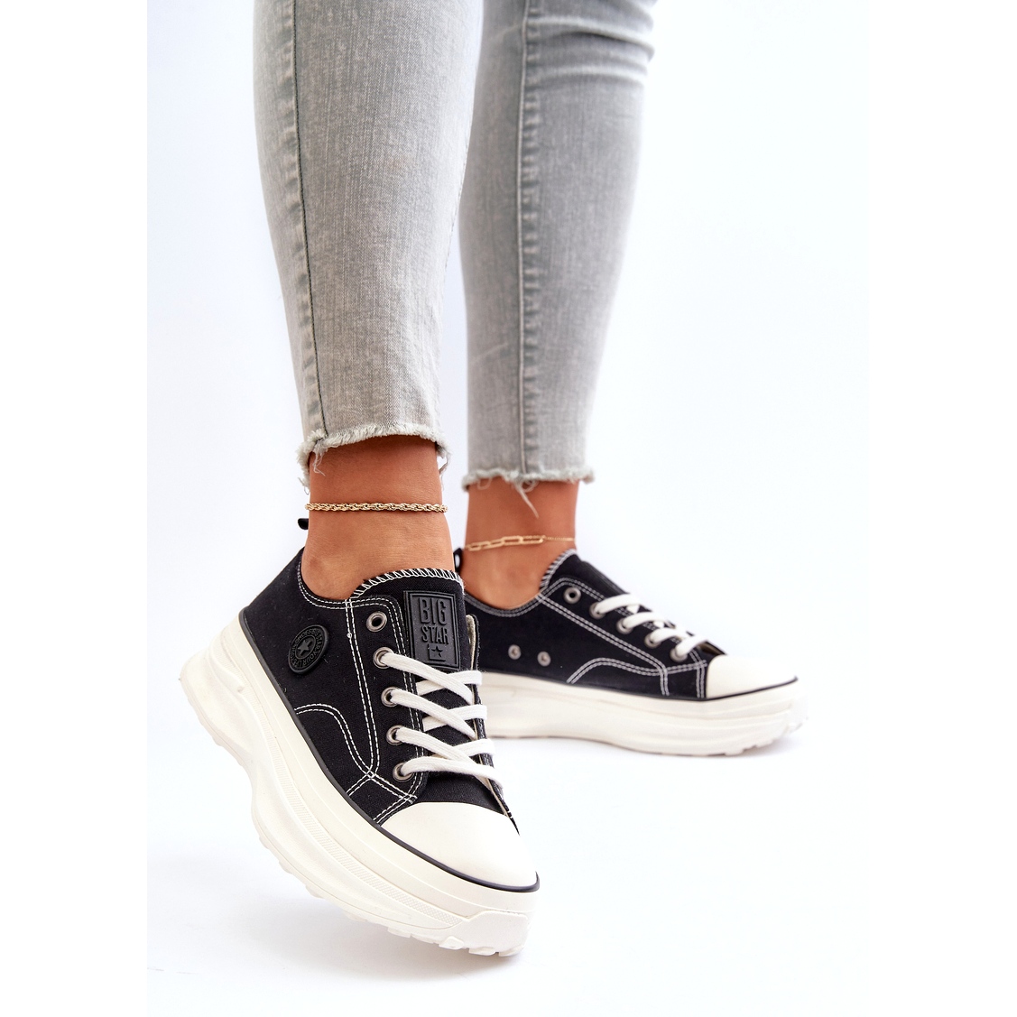 Las zapatillas Big Star combinarán muy bien con muchos estilos, desde vaqueros y camisetas de uso diario hasta vestidos más elegantes. Su clásico color negro combinado con una suela blanca los hace extremadamente universales. El cierre de cordones permite un ajuste individual y el embalaje original incluido en el set es un regalo elegante para un ser querido.