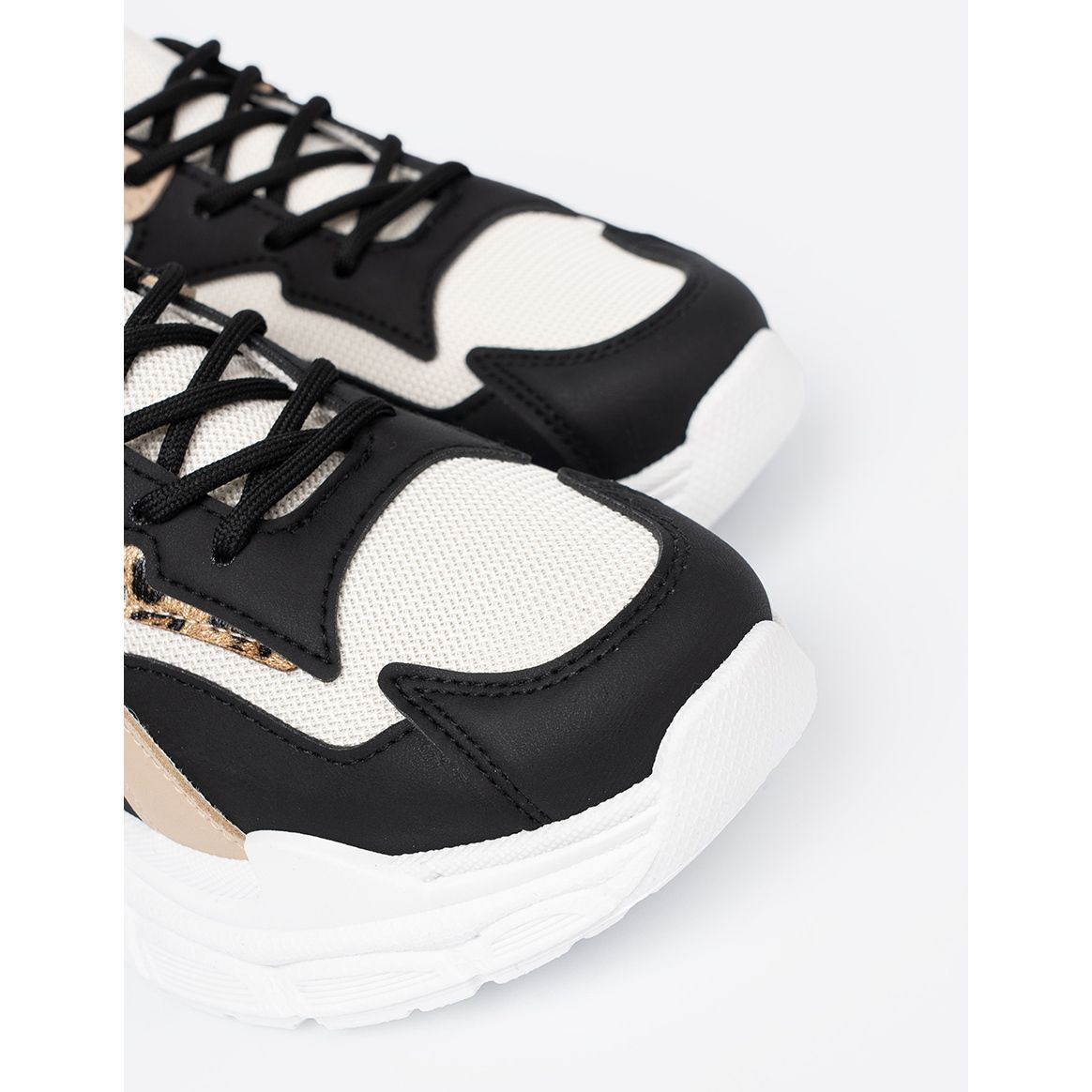 Shelvt Shelvt Zapatillas de deporte para mujeres negras y beige en una suela gruesa negro