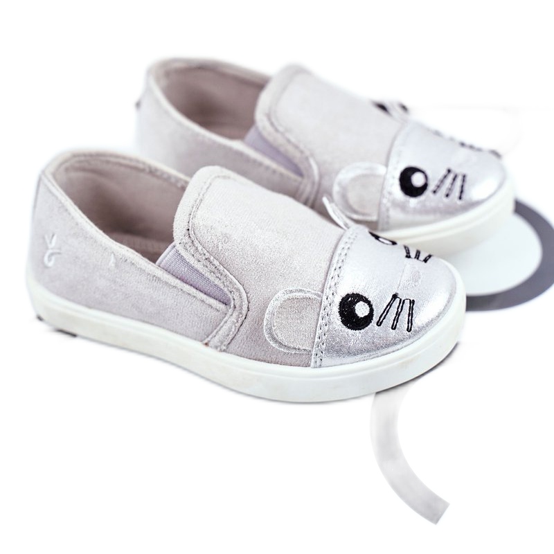 Detalles: Sabana Zapatillas de deporte para niños sin cordones con ratón Candys gris claro