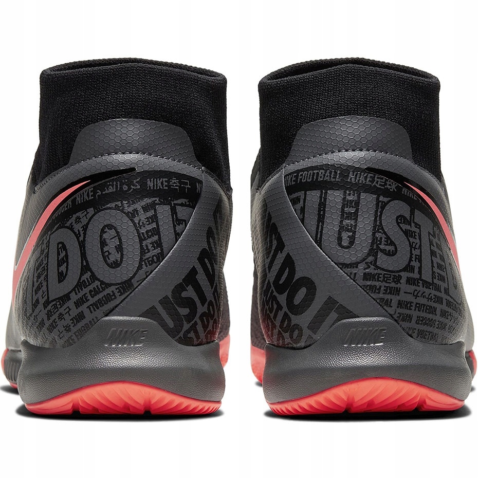 Las zapatillas de fútbol Nike para hombre de la colección Phantom Fire están diseñadas para jugar en una superficie interior dura (indoor). La construcción especializada de la parte superior hecha de materiales sintéticos se adapta a la forma del pie. El collar Dynamic Fit ayuda a estabilizar las articulaciones del tobillo. La suela exterior no deja suciedad en la pista de baile. Nivel: semi-amateur.