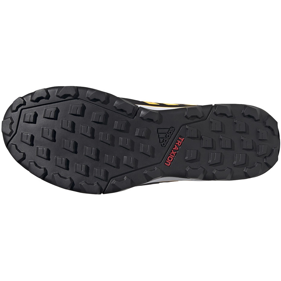 Las zapatillas de trail running adidas para hombre ofrecen una tracción notable en todo, incluso en terrenos rocosos. Suela Traxion con dibujo técnico de la pisada. Parte superior de malla resistente a la abrasión con grandes ojales. Forro de tejido suave con plantilla de espuma y entresuela de EVA. Trabilla de talón trenzada.