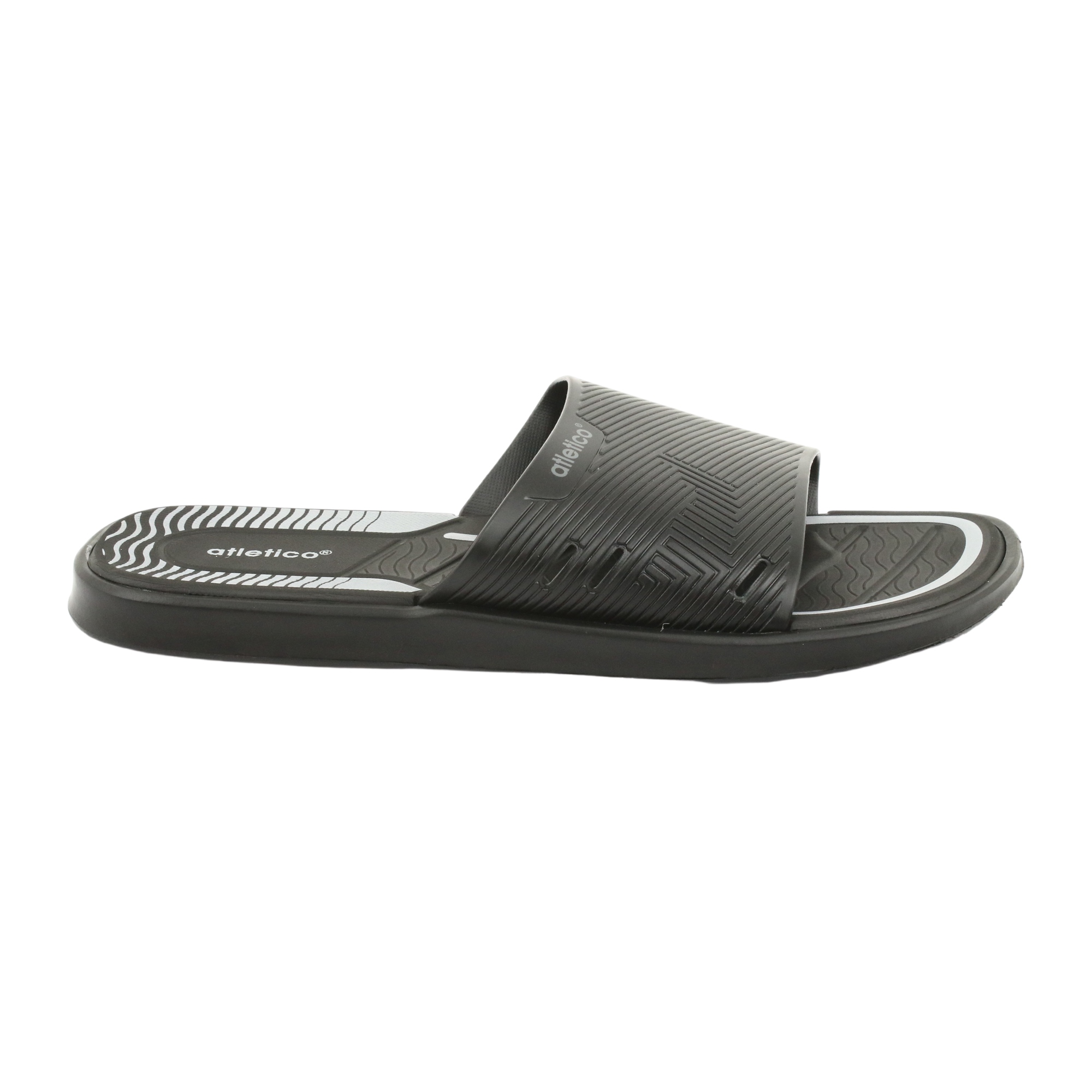 Detalles: Atletico Zapatillas de hombre negras para la piscina del Atlético negro gris