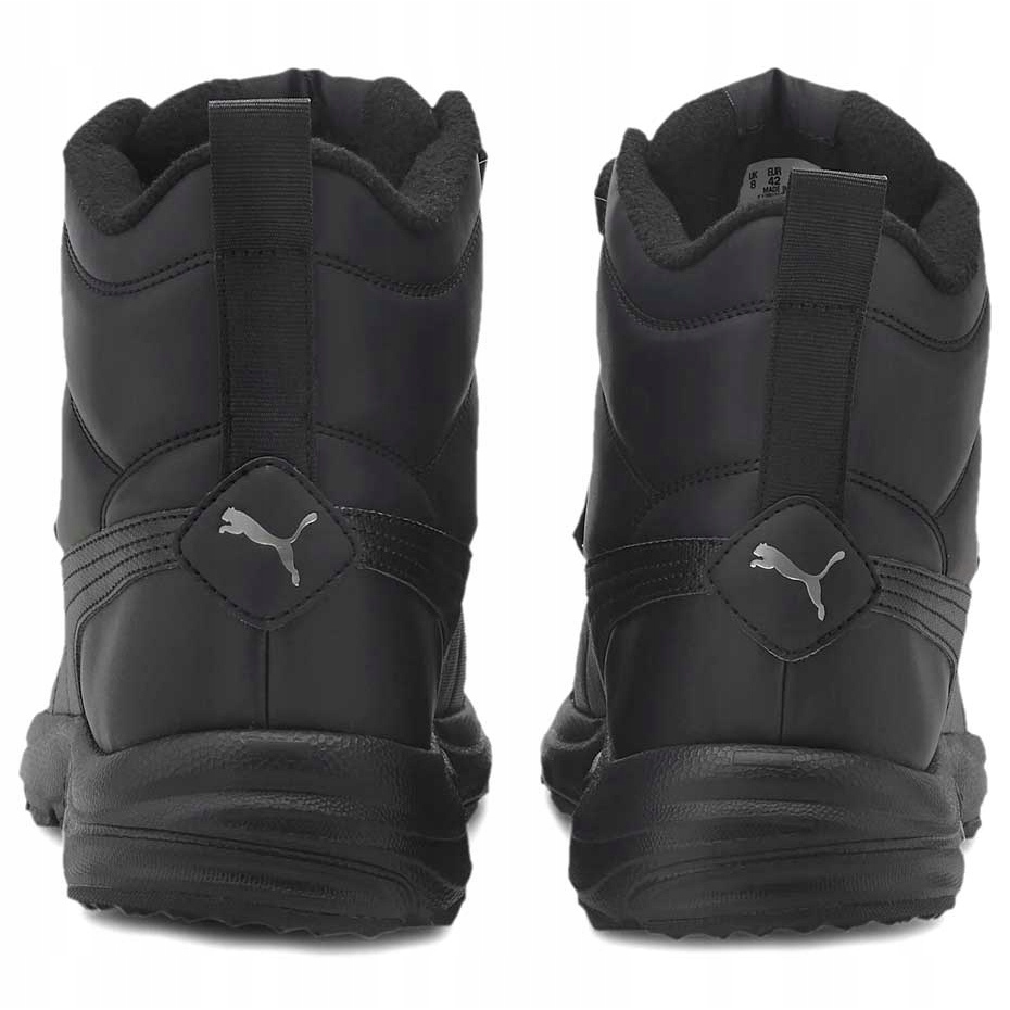 Botas de invierno para hombre Puma. El modelo está equipado con una membrana impermeable y transpirable. Además, las zapatillas tienen una suela exterior de goma duradera Griffie-Arch-Tec, que garantiza comodidad de uso y tracción en superficies resbaladizas. El modelo utiliza la tecnología SOFTFOAM +, es decir, una plantilla suave y cómoda que recuerda la forma anatómica del pie. Además, el inserto minimiza la retención de calor y no absorbe los olores. La comodidad térmica también está garantizada por el cuello superior aislado. Modelo negro.