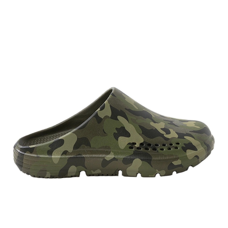 Las chanclas Tallinn-01MP están hechas de caucho de alta calidad, lo que garantiza su durabilidad y facilita la limpieza. La nariz redonda contribuye a la conveniencia del uso, y un talón plano con una altura de 3 cm asegura la estabilidad incluso durante la acción intensiva. El color verde con el efecto de camuflaje le da a las aletas un carácter único, que sin duda atraerá la atención.