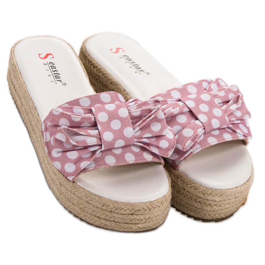 Descubre el verano con todo estilo con las chanclas Seastar en un encantador color rosa y un moderno estampado de lunares. Estas chanclas de verano con suela gruesa de cordón son la elección perfecta para las mujeres que valoran no solo la comodidad, sino también la elegancia en el día a día. Su estilo delicado y juvenil será un complemento perfecto para el estilismo navideño.