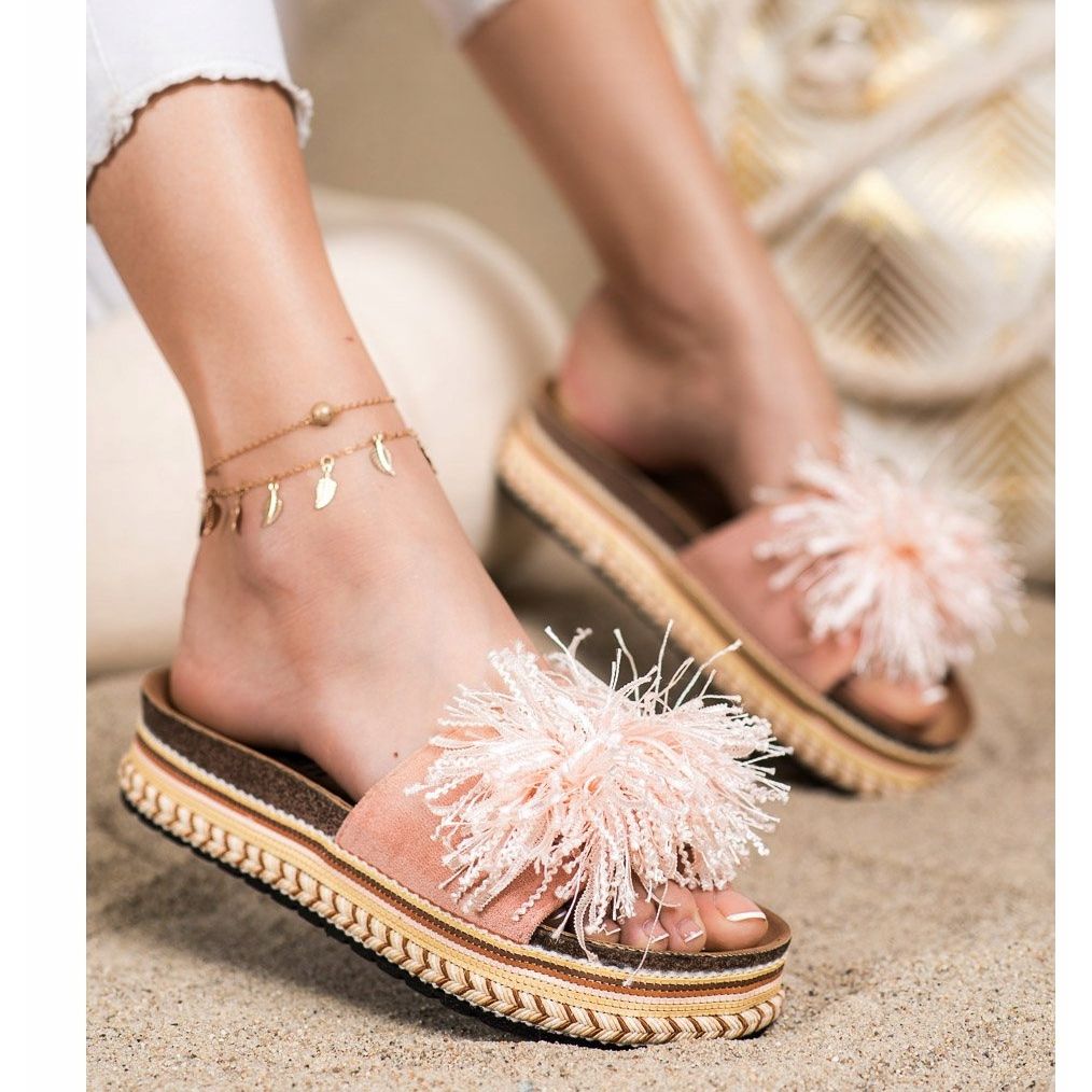 Detalles: SHELOVET Zapatillas de moda con flecos rosa