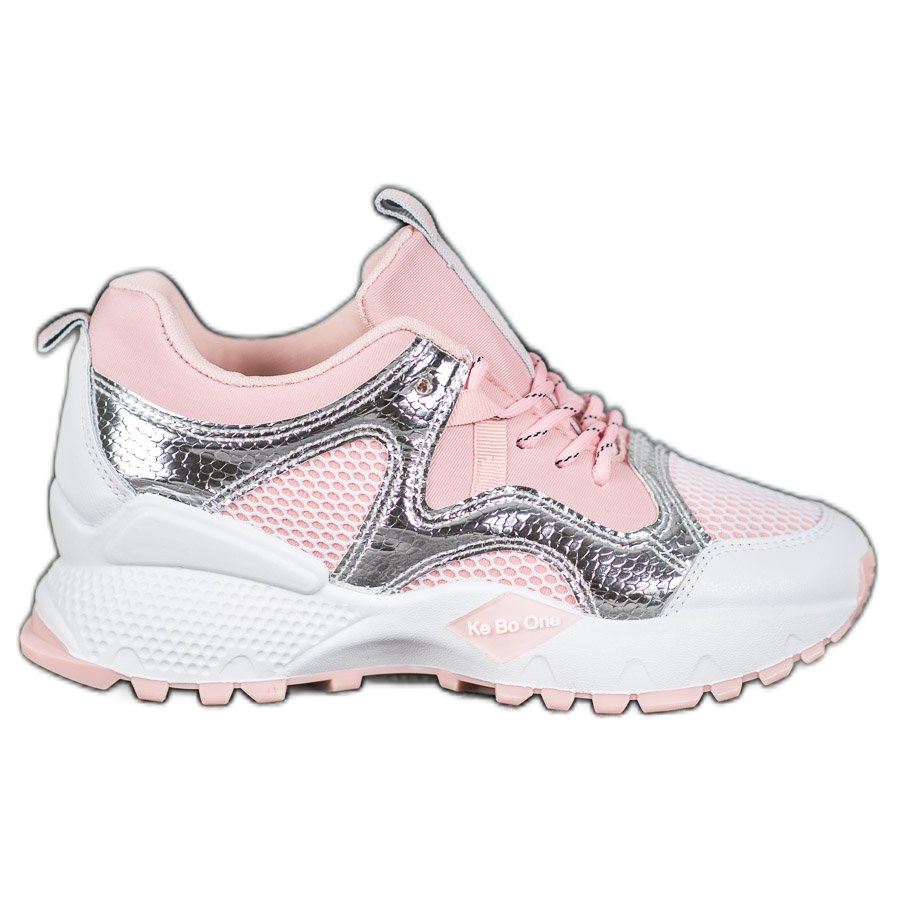 Detalles: Bona Zapatillas de moda con malla rosa gris
