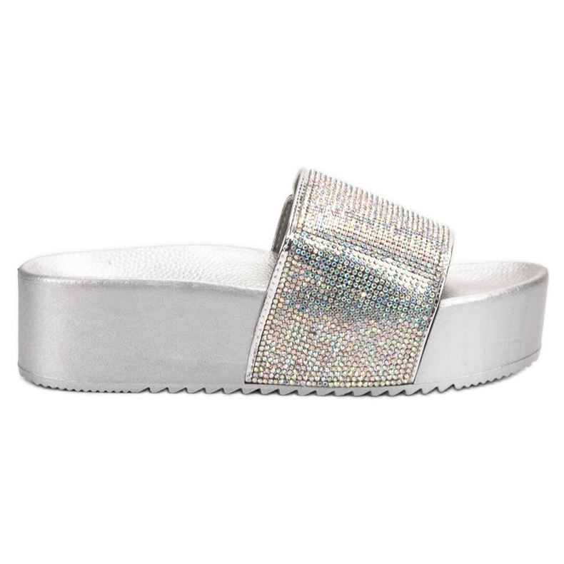 Descubre la moda de todos los días con las sandalias de plataforma Marquiz en un elegante color gris. Estas chanclas únicas son un complemento perfecto para las mujeres que valoran la comodidad, pero no renuncian al estilo único. Decorados con cristales brillantes, llaman la atención y combinan perfectamente con estilos veraniegos e informales.